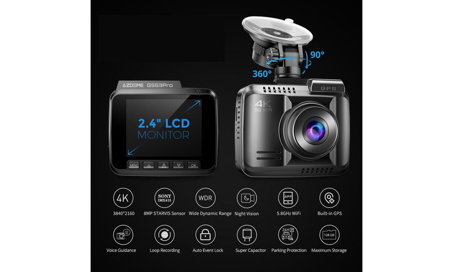Kamera AZDOME GS63 Pro 4K se zadní kamerou s aplikací pro mobilní telefony je špičkové zařízení pro všechny, kteří hledají spolehlivou a vysoce kvalitní dashcam kameru.